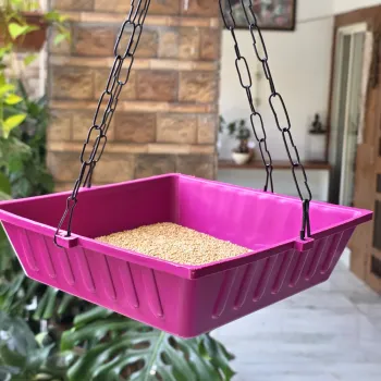 यह छोटा फीडर सेट पक्षियों को खाना और पानी देने के लिए है। इसे लटकाना, साफ करना और भरना आसान है। छोटे स्थानों के लिए बहुत अच्छा है।