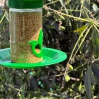 The double-decker design is a space-saving solution that allows you to provide both food and water in a single unit. The upper section is designed to hold water for hydration, while the lower section stores seeds, offering a complete nourishment station for birds in one compact body.