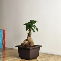 Ficus Ginseng Bonsai is a type of bonsai tree from the Ficus microcarpa species, known for its thick, gnarled roots resembling ginseng and its dense, glossy green foliage.