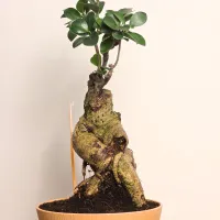 Ficus Ginseng Bonsai is a type of bonsai tree from the Ficus microcarpa species, known for its thick, gnarled roots resembling ginseng and its dense, glossy green foliage.