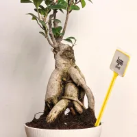 Ficus Ginseng Bonsai is a type of bonsai tree from the Ficus microcarpa species, known for its thick, gnarled roots resembling ginseng and its dense, glossy green foliage.