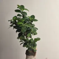 Ficus Ginseng Bonsai is a type of bonsai tree from the Ficus microcarpa species, known for its thick, gnarled roots resembling ginseng and its dense, glossy green foliage.