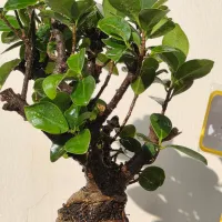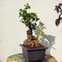 Ficus Ginseng Bonsai is a type of bonsai tree from the Ficus microcarpa species, known for its thick, gnarled roots resembling ginseng and its dense, glossy green foliage.