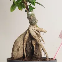 Bonsai is a unique and attractive bonsai variety known for its thick, exposed roots that resemble ginseng, and a dense canopy of oval-shaped, glossy green leaves. Native to Southeast Asia, it belongs to the Ficus microcarpa species and is popular for both beginners and experienced growers due to its hardy nature. It thrives in warm, humid conditions with bright indirect light and regular watering. The tree symbolizes strength and harmony and is often used for indoor decoration and as a thoughtful gift. Regular pruning helps maintain its compact and artistic shap