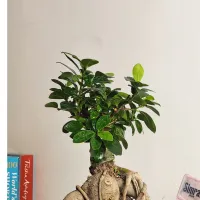 Ficus Ginseng Bonsai is a type of bonsai tree from the Ficus microcarpa species, known for its thick, gnarled roots resembling ginseng and its dense, glossy green foliage.