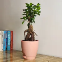 फाइकस जिनसेंग बोनसाई एक यूनिक और अर्टेक्टिव बोनसाई किस्म है जो अपनी मोटी, उभरी हुई जड़ों के लिए जानी जाती है जो जिनसेंग जैसी होती हैं, इसकी पत्त्यिॉ ओवलशेप और चमकदार होती है। यह फाइकस की माइक्रोकार्पा वेरायटी से भी संबंधित है और अपनी मजबूत प्रकृति के कारण सभी बनोसाई प्रेमियों के बीच लोकप्रिय है। यह इनडायरेक्ट सनलाइट में अच्छे से ग्रो करता है। इसे अच्छे भाग्य के साथ साथ, संपन्नता और सद्भाव का प्रतीक भी माना जाता है, इसे इनडोर सजावट और एक अच्छे ग्रीन गिफ्ट के रूप में भी उपयोग किया जाता है। नियमित छंटाई इसके कॉम्पैक्ट और आर्टिस्टिक शेप को बनाए रखने में मदद करती है।
