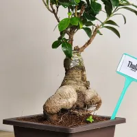 Ficus Ginseng Bonsai is a type of bonsai tree from the Ficus microcarpa species, known for its thick, gnarled roots resembling ginseng and its dense, glossy green foliage.