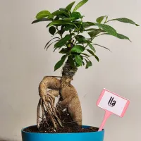 फाइकस जिनसेंग बोनसाई एक यूनिक और अर्टेक्टिव बोनसाई किस्म है जो अपनी मोटी, उभरी हुई जड़ों के लिए जानी जाती है जो जिनसेंग जैसी होती हैं, इसकी पत्त्यिॉ ओवलशेप और चमकदार होती है। यह फाइकस की माइक्रोकार्पा वेरायटी से भी संबंधित है और अपनी मजबूत प्रकृति के कारण सभी बनोसाई प्रेमियों के बीच लोकप्रिय है। यह इनडायरेक्ट सनलाइट में अच्छे से ग्रो करता है। इसे अच्छे भाग्य के साथ साथ, संपन्नता और सद्भाव का प्रतीक भी माना जाता है, इसे इनडोर सजावट और एक अच्छे ग्रीन गिफ्ट के रूप में भी उपयोग किया जाता है। नियमित छंटाई इसके कॉम्पैक्ट और आर्टिस्टिक शेप को बनाए रखने में मदद करती है।
