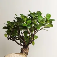 Ficus Ginseng Bonsai is a type of bonsai tree from the Ficus microcarpa species, known for its thick, gnarled roots resembling ginseng and its dense, glossy green foliage.