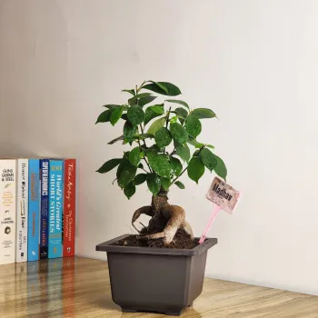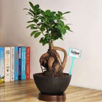 फाइकस जिनसेंग बोनसाई एक यूनिक और अर्टेक्टिव बोनसाई किस्म है जो अपनी मोटी, उभरी हुई जड़ों के लिए जानी जाती है जो जिनसेंग जैसी होती हैं, इसकी पत्त्यिॉ ओवलशेप और चमकदार होती है। यह फाइकस की माइक्रोकार्पा वेरायटी से भी संबंधित है और अपनी मजबूत प्रकृति के कारण सभी बनोसाई प्रेमियों के बीच लोकप्रिय है। यह इनडायरेक्ट सनलाइट में अच्छे से ग्रो करता है। इसे अच्छे भाग्य के साथ साथ, संपन्नता और सद्भाव का प्रतीक भी माना जाता है, इसे इनडोर सजावट और एक अच्छे ग्रीन गिफ्ट के रूप में भी उपयोग किया जाता है। नियमित छंटाई इसके कॉम्पैक्ट और आर्टिस्टिक शेप को बनाए रखने में मदद करती है।