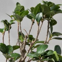 Ficus Ginseng Bonsai is a type of bonsai tree from the Ficus microcarpa species, known for its thick, gnarled roots resembling ginseng and its dense, glossy green foliage.