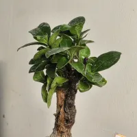 Ficus Ginseng Bonsai is a type of bonsai tree from the Ficus microcarpa species, known for its thick, gnarled roots resembling ginseng and its dense, glossy green foliage.