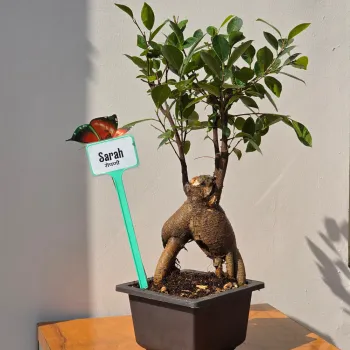 फाइकस जिनसेंग बोनसाई एक यूनिक और अर्टेक्टिव बोनसाई किस्म है जो अपनी मोटी, उभरी हुई जड़ों के लिए जानी जाती है जो जिनसेंग जैसी होती हैं, इसकी पत्त्यिॉ ओवलशेप और चमकदार होती है। यह फाइकस की माइक्रोकार्पा वेरायटी से भी संबंधित है और अपनी मजबूत प्रकृति के कारण सभी बनोसाई प्रेमियों के बीच लोकप्रिय है। यह इनडायरेक्ट सनलाइट में अच्छे से ग्रो करता है। इसे अच्छे भाग्य के साथ साथ, संपन्नता और सद्भाव का प्रतीक भी माना जाता है, इसे इनडोर सजावट और एक अच्छे ग्रीन गिफ्ट के रूप में भी उपयोग किया जाता है। नियमित छंटाई इसके कॉम्पैक्ट और आर्टिस्टिक शेप को बनाए रखने में मदद करती है।