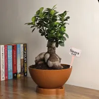 फाइकस जिनसेंग बोनसाई एक यूनिक और अर्टेक्टिव बोनसाई किस्म है जो अपनी मोटी, उभरी हुई जड़ों के लिए जानी जाती है जो जिनसेंग जैसी होती हैं, इसकी पत्त्यिॉ ओवलशेप और चमकदार होती है। यह फाइकस की माइक्रोकार्पा वेरायटी से भी संबंधित है और अपनी मजबूत प्रकृति के कारण सभी बनोसाई प्रेमियों के बीच लोकप्रिय है। यह इनडायरेक्ट सनलाइट में अच्छे से ग्रो करता है। इसे अच्छे भाग्य के साथ साथ, संपन्नता और सद्भाव का प्रतीक भी माना जाता है, इसे इनडोर सजावट और एक अच्छे ग्रीन गिफ्ट के रूप में भी उपयोग किया जाता है। नियमित छंटाई इसके कॉम्पैक्ट और आर्टिस्टिक शेप को बनाए रखने में मदद करती है।