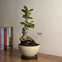फाइकस जिनसेंग बोनसाई एक यूनिक और अर्टेक्टिव बोनसाई किस्म है जो अपनी मोटी, उभरी हुई जड़ों के लिए जानी जाती है जो जिनसेंग जैसी होती हैं, इसकी पत्त्यिॉ ओवलशेप और चमकदार होती है। यह फाइकस की माइक्रोकार्पा वेरायटी से भी संबंधित है और अपनी मजबूत प्रकृति के कारण सभी बनोसाई प्रेमियों के बीच लोकप्रिय है। यह इनडायरेक्ट सनलाइट में अच्छे से ग्रो करता है। इसे अच्छे भाग्य के साथ साथ, संपन्नता और सद्भाव का प्रतीक भी माना जाता है, इसे इनडोर सजावट और एक अच्छे ग्रीन गिफ्ट के रूप में भी उपयोग किया जाता है। नियमित छंटाई इसके कॉम्पैक्ट और आर्टिस्टिक शेप को बनाए रखने में मदद करती है।