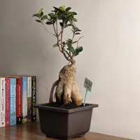 Ficus Ginseng Bonsai is a type of bonsai tree from the Ficus microcarpa species, known for its thick, gnarled roots resembling ginseng and its dense, glossy green foliage.
