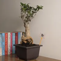 फाइकस जिनसेंग बोनसाई एक यूनिक और अर्टेक्टिव बोनसाई किस्म है जो अपनी मोटी, उभरी हुई जड़ों के लिए जानी जाती है जो जिनसेंग जैसी होती हैं, इसकी पत्त्यिॉ ओवलशेप और चमकदार होती है। यह फाइकस की माइक्रोकार्पा वेरायटी से भी संबंधित है और अपनी मजबूत प्रकृति के कारण सभी बनोसाई प्रेमियों के बीच लोकप्रिय है। यह इनडायरेक्ट सनलाइट में अच्छे से ग्रो करता है। इसे अच्छे भाग्य के साथ साथ, संपन्नता और सद्भाव का प्रतीक भी माना जाता है, इसे इनडोर सजावट और एक अच्छे ग्रीन गिफ्ट के रूप में भी उपयोग किया जाता है। नियमित छंटाई इसके कॉम्पैक्ट और आर्टिस्टिक शेप को बनाए रखने में मदद करती है।