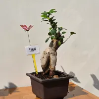 Ficus Ginseng Bonsai is a type of bonsai tree from the Ficus microcarpa species, known for its thick, gnarled roots resembling ginseng and its dense, glossy green foliage.