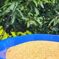 You can offer it in tray feeders, scatter it on the ground, or mix it with other seeds in a feeder. Avoid letting it sit wet, as it may mold.