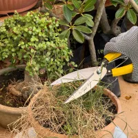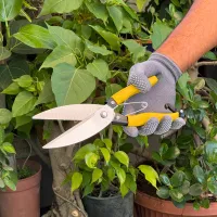 Hold the handles firmly and use a gentle scissor motion to trim grass along the edges of pots, beds, or pathways. Work slowly along the edge to shape the grass neatly and remove any overgrowth. These shears are especially helpful for maintaining clean borders around garden beds and tight spaces near walls or plants.