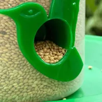 यह बड़ा पक्षी फीडर झोपड़ी जैसा बना है जो पक्षियों को खाना और छाया देता है। इसे आसानी से टांगा जा सकता है और यह बारिश और धूप से खाने को बचाता है। इसके रंग चमकीले हैं और यह आपकी बालकनी या बगीचे को सुंदर बनाता है।