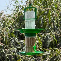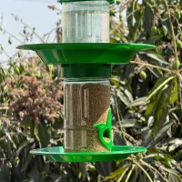 The double-decker design is a space-saving solution that allows you to provide both food and water in a single unit. The upper section is designed to hold water for hydration, while the lower section stores seeds, offering a complete nourishment station for birds in one compact body.