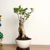 फाइकस जिनसेंग बोनसाई एक यूनिक और अर्टेक्टिव बोनसाई किस्म है जो अपनी मोटी, उभरी हुई जड़ों के लिए जानी जाती है जो जिनसेंग जैसी होती हैं, इसकी पत्त्यिॉ ओवलशेप और चमकदार होती है। यह फाइकस की माइक्रोकार्पा वेरायटी से भी संबंधित है और अपनी मजबूत प्रकृति के कारण सभी बनोसाई प्रेमियों के बीच लोकप्रिय है। यह इनडायरेक्ट सनलाइट में अच्छे से ग्रो करता है। इसे अच्छे भाग्य के साथ साथ, संपन्नता और सद्भाव का प्रतीक भी माना जाता है, इसे इनडोर सजावट और एक अच्छे ग्रीन गिफ्ट के रूप में भी उपयोग किया जाता है। नियमित छंटाई इसके कॉम्पैक्ट और आर्टिस्टिक शेप को बनाए रखने में मदद करती है।