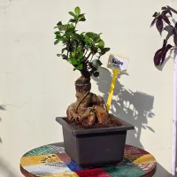 Ficus Ginseng Bonsai is a type of bonsai tree from the Ficus microcarpa species, known for its thick, gnarled roots resembling ginseng and its dense, glossy green foliage.