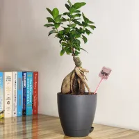 फाइकस जिनसेंग बोनसाई एक यूनिक और अर्टेक्टिव बोनसाई किस्म है जो अपनी मोटी, उभरी हुई जड़ों के लिए जानी जाती है जो जिनसेंग जैसी होती हैं, इसकी पत्त्यिॉ ओवलशेप और चमकदार होती है। यह फाइकस की माइक्रोकार्पा वेरायटी से भी संबंधित है और अपनी मजबूत प्रकृति के कारण सभी बनोसाई प्रेमियों के बीच लोकप्रिय है। यह इनडायरेक्ट सनलाइट में अच्छे से ग्रो करता है। इसे अच्छे भाग्य के साथ साथ, संपन्नता और सद्भाव का प्रतीक भी माना जाता है, इसे इनडोर सजावट और एक अच्छे ग्रीन गिफ्ट के रूप में भी उपयोग किया जाता है। नियमित छंटाई इसके कॉम्पैक्ट और आर्टिस्टिक शेप को बनाए रखने में मदद करती है।