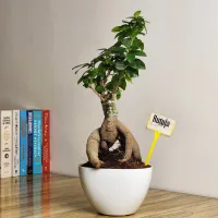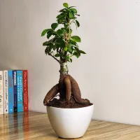 Ficus Ginseng Bonsai is a type of bonsai tree from the Ficus microcarpa species, known for its thick, gnarled roots resembling ginseng and its dense, glossy green foliage.