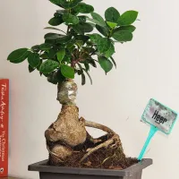 Ficus Ginseng Bonsai is a type of bonsai tree from the Ficus microcarpa species, known for its thick, gnarled roots resembling ginseng and its dense, glossy green foliage.