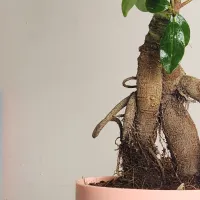 Ficus Ginseng Bonsai is a type of bonsai tree from the Ficus microcarpa species, known for its thick, gnarled roots resembling ginseng and its dense, glossy green foliage.