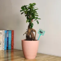 फाइकस जिनसेंग बोनसाई एक यूनिक और अर्टेक्टिव बोनसाई किस्म है जो अपनी मोटी, उभरी हुई जड़ों के लिए जानी जाती है जो जिनसेंग जैसी होती हैं, इसकी पत्त्यिॉ ओवलशेप और चमकदार होती है। यह फाइकस की माइक्रोकार्पा वेरायटी से भी संबंधित है और अपनी मजबूत प्रकृति के कारण सभी बनोसाई प्रेमियों के बीच लोकप्रिय है। यह इनडायरेक्ट सनलाइट में अच्छे से ग्रो करता है। इसे अच्छे भाग्य के साथ साथ, संपन्नता और सद्भाव का प्रतीक भी माना जाता है, इसे इनडोर सजावट और एक अच्छे ग्रीन गिफ्ट के रूप में भी उपयोग किया जाता है। नियमित छंटाई इसके कॉम्पैक्ट और आर्टिस्टिक शेप को बनाए रखने में मदद करती है।