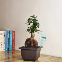 फाइकस जिनसेंग बोनसाई एक यूनिक और अर्टेक्टिव बोनसाई किस्म है जो अपनी मोटी, उभरी हुई जड़ों के लिए जानी जाती है जो जिनसेंग जैसी होती हैं, इसकी पत्त्यिॉ ओवलशेप और चमकदार होती है। यह फाइकस की माइक्रोकार्पा वेरायटी से भी संबंधित है और अपनी मजबूत प्रकृति के कारण सभी बनोसाई प्रेमियों के बीच लोकप्रिय है। यह इनडायरेक्ट सनलाइट में अच्छे से ग्रो करता है। इसे अच्छे भाग्य के साथ साथ, संपन्नता और सद्भाव का प्रतीक भी माना जाता है, इसे इनडोर सजावट और एक अच्छे ग्रीन गिफ्ट के रूप में भी उपयोग किया जाता है। नियमित छंटाई इसके कॉम्पैक्ट और आर्टिस्टिक शेप को बनाए रखने में मदद करती है।