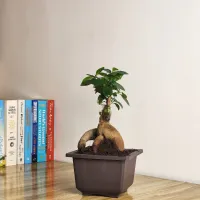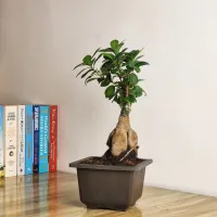 Ficus Ginseng Bonsai is a type of bonsai tree from the Ficus microcarpa species, known for its thick, gnarled roots resembling ginseng and its dense, glossy green foliage.