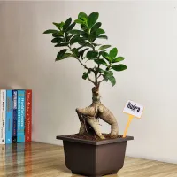Ficus Ginseng Bonsai is a type of bonsai tree from the Ficus microcarpa species, known for its thick, gnarled roots resembling ginseng and its dense, glossy green foliage.