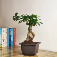 Ficus Ginseng Bonsai is a type of bonsai tree from the Ficus microcarpa species, known for its thick, gnarled roots resembling ginseng and its dense, glossy green foliage.