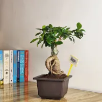 Ficus Ginseng Bonsai is a popular indoor bonsai tree known for its thick, pot-bellied trunk and glossy green leaves. It’s easy to care for, thrives in bright indirect light, and tolerates occasional neglect, making it ideal for home or office decor.