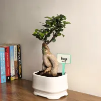 फाइकस जिनसेंग बोनसाई एक यूनिक और अर्टेक्टिव बोनसाई किस्म है जो अपनी मोटी, उभरी हुई जड़ों के लिए जानी जाती है जो जिनसेंग जैसी होती हैं, इसकी पत्त्यिॉ ओवलशेप और चमकदार होती है। यह फाइकस की माइक्रोकार्पा वेरायटी से भी संबंधित है और अपनी मजबूत प्रकृति के कारण सभी बनोसाई प्रेमियों के बीच लोकप्रिय है। यह इनडायरेक्ट सनलाइट में अच्छे से ग्रो करता है। इसे अच्छे भाग्य के साथ साथ, संपन्नता और सद्भाव का प्रतीक भी माना जाता है, इसे इनडोर सजावट और एक अच्छे ग्रीन गिफ्ट के रूप में भी उपयोग किया जाता है। नियमित छंटाई इसके कॉम्पैक्ट और आर्टिस्टिक शेप को बनाए रखने में मदद करती है।