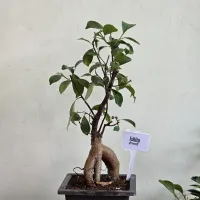 Ficus Ginseng Bonsai is a unique and attractive bonsai variety known for its thick, exposed roots that resemble ginseng, and a dense canopy of oval-shaped, glossy green leaves. Native to Southeast Asia, it belongs to the Ficus microcarpa species and is popular for both beginners and experienced growers due to its hardy nature. It thrives in warm, humid conditions with bright indirect light and regular watering. The tree symbolizes strength and harmony and is often used for indoor decoration and as a thoughtful gift. Regular pruning helps maintain its compact and artistic shape.