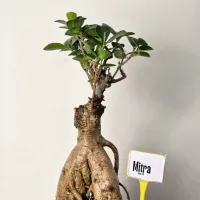 फाइकस जिनसेंग बोनसाई एक यूनिक और अर्टेक्टिव बोनसाई किस्म है जो अपनी मोटी, उभरी हुई जड़ों के लिए जानी जाती है जो जिनसेंग जैसी होती हैं, इसकी पत्त्यिॉ ओवलशेप और चमकदार होती है। यह फाइकस की माइक्रोकार्पा वेरायटी से भी संबंधित है और अपनी मजबूत प्रकृति के कारण सभी बनोसाई प्रेमियों के बीच लोकप्रिय है। यह इनडायरेक्ट सनलाइट में अच्छे से ग्रो करता है। इसे अच्छे भाग्य के साथ साथ, संपन्नता और सद्भाव का प्रतीक भी माना जाता है, इसे इनडोर सजावट और एक अच्छे ग्रीन गिफ्ट के रूप में भी उपयोग किया जाता है। नियमित छंटाई इसके कॉम्पैक्ट और आर्टिस्टिक शेप को बनाए रखने में मदद करती है।