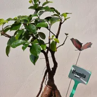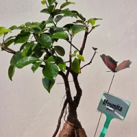 Moumita is a Ficus bonsai with a gently tapering trunk and exposed roots that give it a natural, grounded character. The branching rises lightly into a spread of healthy, glossy leaves, creating an open and airy silhouette. It feels calm yet expressive, making it an easy, ready-to-display bonsai for desks, shelves, or quiet corners.