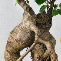 Ficus Ginseng Bonsai is a type of bonsai tree from the Ficus microcarpa species, known for its thick, gnarled roots resembling ginseng and its dense, glossy green foliage.