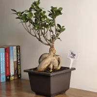 फाइकस जिनसेंग बोनसाई एक यूनिक और अर्टेक्टिव बोनसाई किस्म है जो अपनी मोटी, उभरी हुई जड़ों के लिए जानी जाती है जो जिनसेंग जैसी होती हैं, इसकी पत्त्यिॉ ओवलशेप और चमकदार होती है। यह फाइकस की माइक्रोकार्पा वेरायटी से भी संबंधित है और अपनी मजबूत प्रकृति के कारण सभी बनोसाई प्रेमियों के बीच लोकप्रिय है। यह इनडायरेक्ट सनलाइट में अच्छे से ग्रो करता है। इसे अच्छे भाग्य के साथ साथ, संपन्नता और सद्भाव का प्रतीक भी माना जाता है, इसे इनडोर सजावट और एक अच्छे ग्रीन गिफ्ट के रूप में भी उपयोग किया जाता है। नियमित छंटाई इसके कॉम्पैक्ट और आर्टिस्टिक शेप को बनाए रखने में मदद करती है।