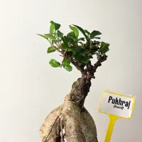 Ficus Ginseng Bonsai is a type of bonsai tree from the Ficus microcarpa species, known for its thick, gnarled roots resembling ginseng and its dense, glossy green foliage.