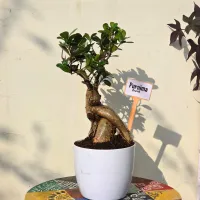 फाइकस जिनसेंग बोनसाई एक यूनिक और अर्टेक्टिव बोनसाई किस्म है जो अपनी मोटी, उभरी हुई जड़ों के लिए जानी जाती है जो जिनसेंग जैसी होती हैं, इसकी पत्त्यिॉ ओवलशेप और चमकदार होती है। यह फाइकस की माइक्रोकार्पा वेरायटी से भी संबंधित है और अपनी मजबूत प्रकृति के कारण सभी बनोसाई प्रेमियों के बीच लोकप्रिय है। यह इनडायरेक्ट सनलाइट में अच्छे से ग्रो करता है। इसे अच्छे भाग्य के साथ साथ, संपन्नता और सद्भाव का प्रतीक भी माना जाता है, इसे इनडोर सजावट और एक अच्छे ग्रीन गिफ्ट के रूप में भी उपयोग किया जाता है। नियमित छंटाई इसके कॉम्पैक्ट और आर्टिस्टिक शेप को बनाए रखने में मदद करती है।