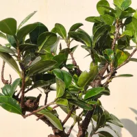 Ficus Ginseng Bonsai is a type of bonsai tree from the Ficus microcarpa species, known for its thick, gnarled roots resembling ginseng and its dense, glossy green foliage.