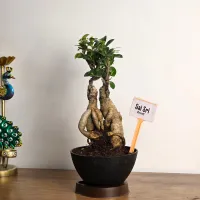 फाइकस जिनसेंग बोनसाई एक यूनिक और अर्टेक्टिव बोनसाई किस्म है जो अपनी मोटी, उभरी हुई जड़ों के लिए जानी जाती है जो जिनसेंग जैसी होती हैं, इसकी पत्त्यिॉ ओवलशेप और चमकदार होती है। यह फाइकस की माइक्रोकार्पा वेरायटी से भी संबंधित है और अपनी मजबूत प्रकृति के कारण सभी बनोसाई प्रेमियों के बीच लोकप्रिय है। यह इनडायरेक्ट सनलाइट में अच्छे से ग्रो करता है। इसे अच्छे भाग्य के साथ साथ, संपन्नता और सद्भाव का प्रतीक भी माना जाता है, इसे इनडोर सजावट और एक अच्छे ग्रीन गिफ्ट के रूप में भी उपयोग किया जाता है। नियमित छंटाई इसके कॉम्पैक्ट और आर्टिस्टिक शेप को बनाए रखने में मदद करती है।