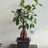 Ficus Ginseng Bonsai is a type of bonsai tree from the Ficus microcarpa species, known for its thick, gnarled roots resembling ginseng and its dense, glossy green foliage.