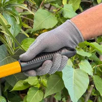 यह जे.एस.पी. हैंड रेक बागवानी का एक बेहद उपयोगी उपकरण है, जिसे उन जगहों पर कचरा साफ करने और मिट्टी तैयार करने के लिए डिज़ाइन किया गया है जहाँ बड़े आकार के रेक इस्तेमाल करने में मुश्किल होते हैं। इसमें काले रंग के चार मजबूत स्टील के दांत लगे हैं, जो मिट्टी में आसानी से फिसलते हुए सूखे पत्ते, पत्थर और उखड़ी हुई खरपतवारों को इकट्ठा करते हैं और साथ ही नई रोपाई के लिए ज़मीन को समतल करते हैं। इस उपकरण में एक लंबा, चमकदार पीला शाफ्ट लगा है जो इसकी पहुँच को बढ़ाता है, जिससे यह कांटेदार झाड़ियों के नीचे, घनी फूलों की क्यारियों या बगीचे की गहरी सीमाओं के पीछे सफाई के लिए एकदम सही है।